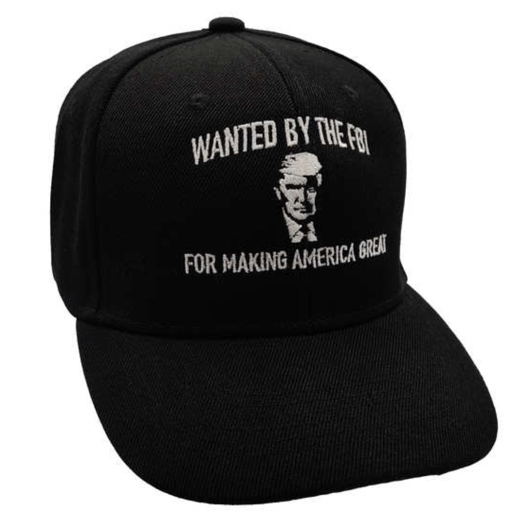 Wanted by the FBI for Making America Great Again Trump Embroidered Hat w/flag bill (Black)