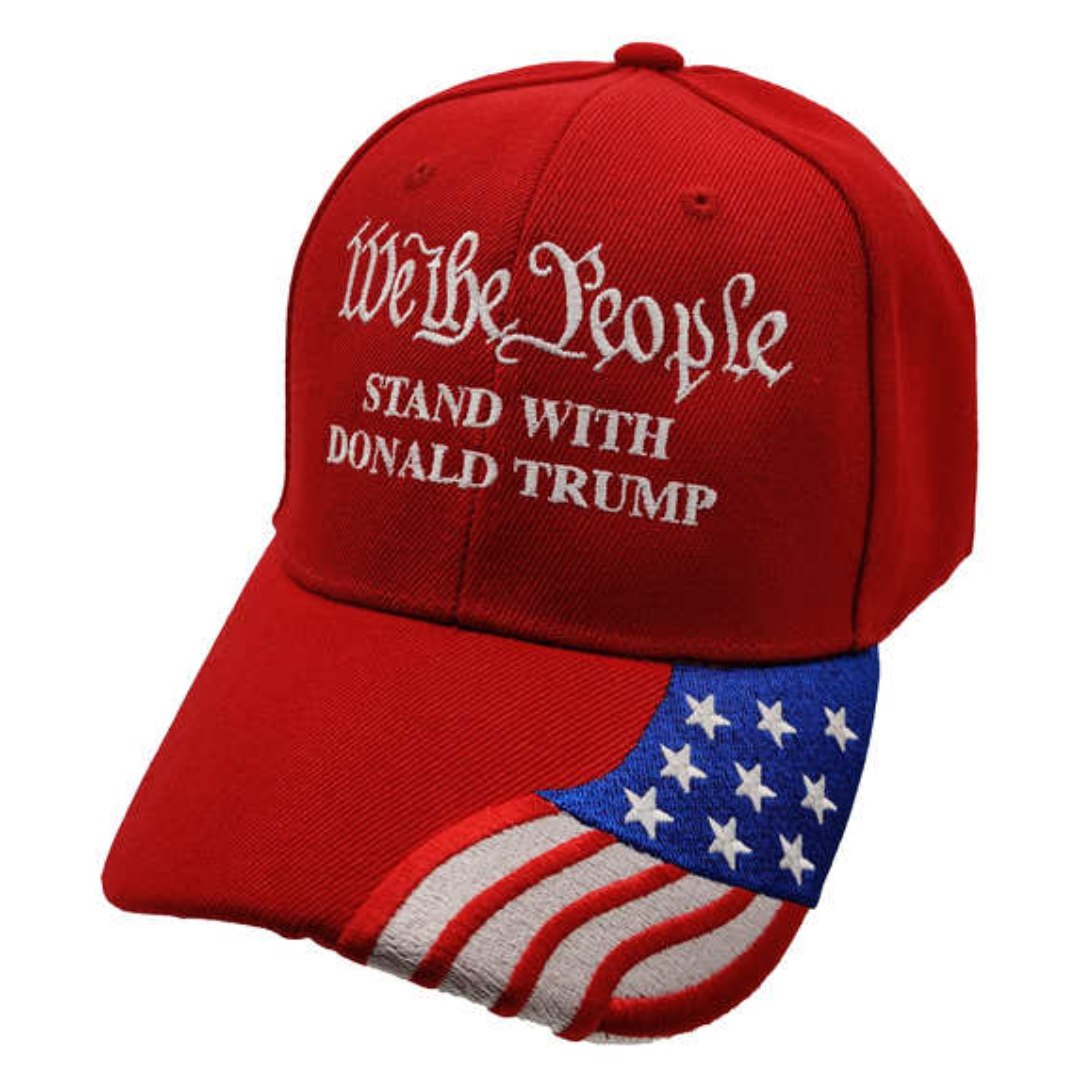 We the People Stand with Trump (w/flag bill) Embroidered Hat (Red)