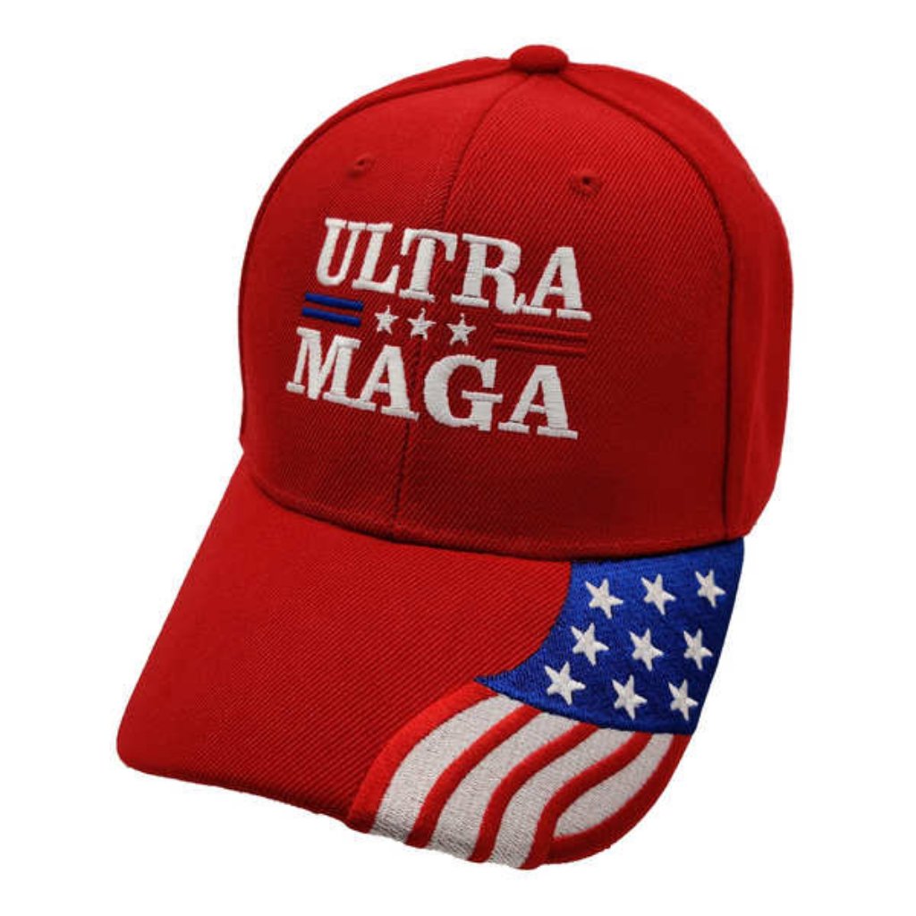 Ultra MAGA Premium Embroidered Hat w/Flag Bill (Red)