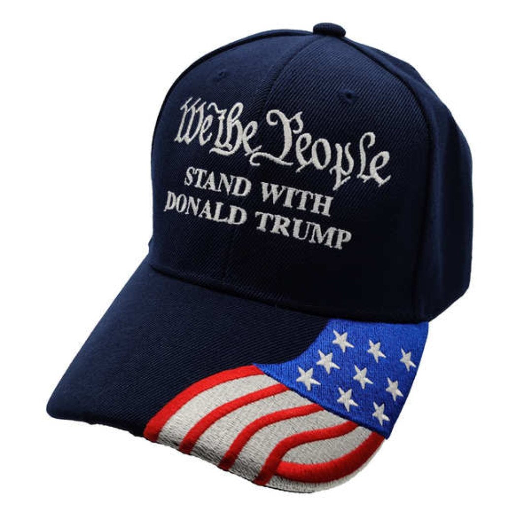 We the People Stand with Trump (w/flag bill) Embroidered Hat (Navy)