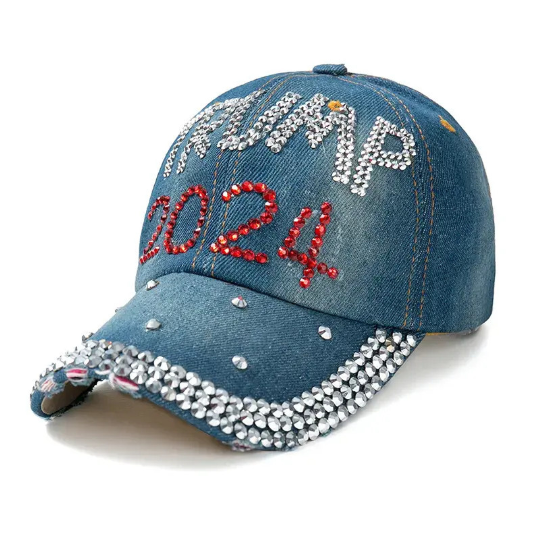 I Love Trump Rhinestone Embroidered Hat (Denim)
